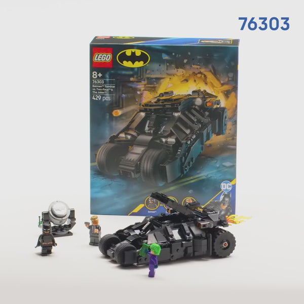 The LEGO DC Batman Tumbler vs. Two-Face & The Joker (76303) is a fun toy for 8 plus year old boys, girls and kids who love Batman, LEGO vehicles and Super Hero adventures. Put Batman action into the hands of young superheroes with this premium-quality LEGO set featuring the iconic Tumbler Batmobile from the classic Dark Knight films.